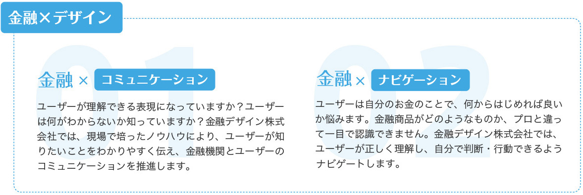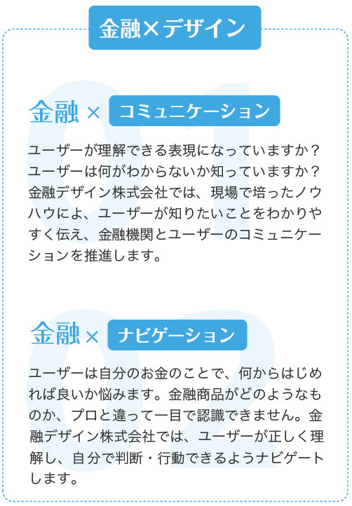 個人向けの金融相談を日頃行なっているファイナンシャルプランナーという視点(金融)とデザイナーという視点(デザイン)を持っていること。「金融×デザイン」が強みです。