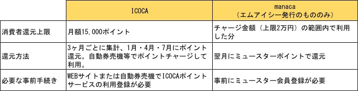 なお、名古屋エリアで利用できるmanacaは、株式会社名古屋交通開発機構と株式会社エムアイシーの2社が発行しています。このうち消費税の消費者ポイント還元が受けられるのは、株式会社エムアイシー発行のもののみなので注意してください。