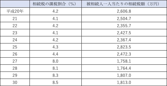 毎年、国税庁が「相続税の申告事績の概要」を発表しており、その中で、亡くなった方のうち、どのくらいが相続税の対象となったかが発表されています。