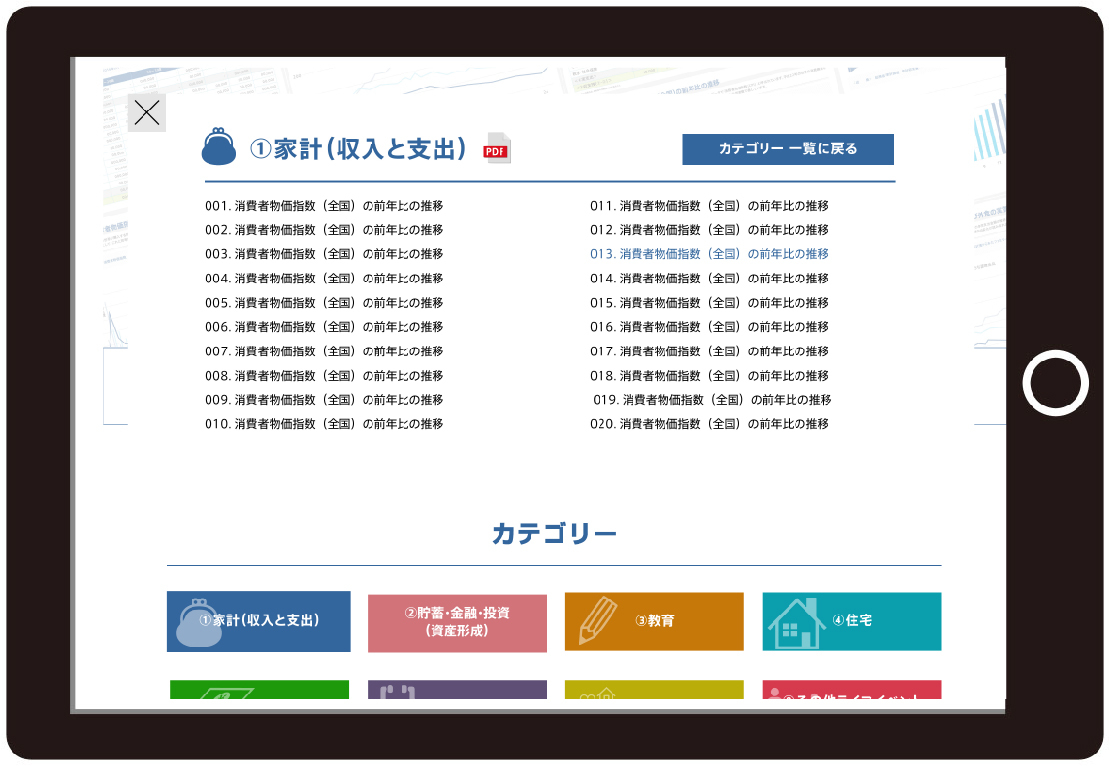 データ検索 | PC、タブレットの索引画面から簡単に見つけられます | 100枚のPDFデータの他に目次がわりになるデータ一覧をお送りします |