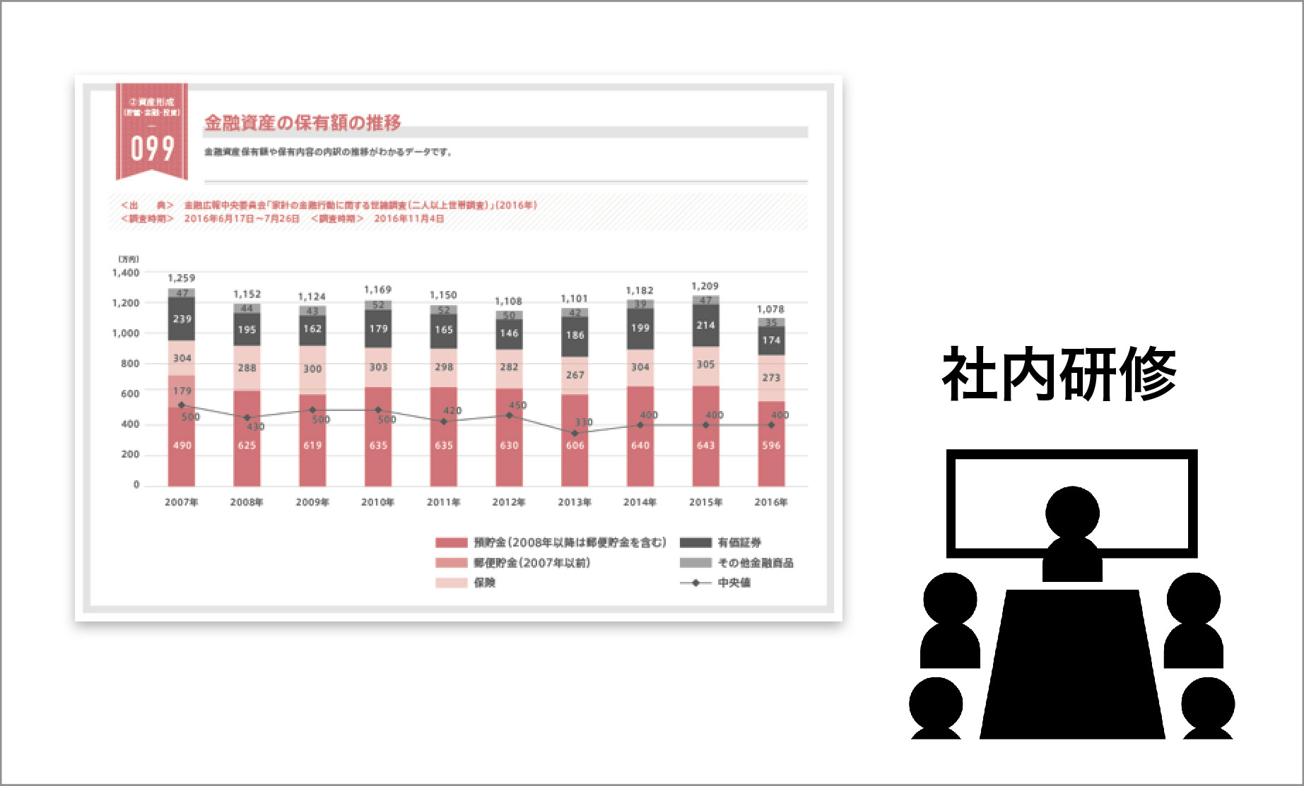 ・セミナー資料、相談業務資料、顧客向け資料、社内向け資料として利用