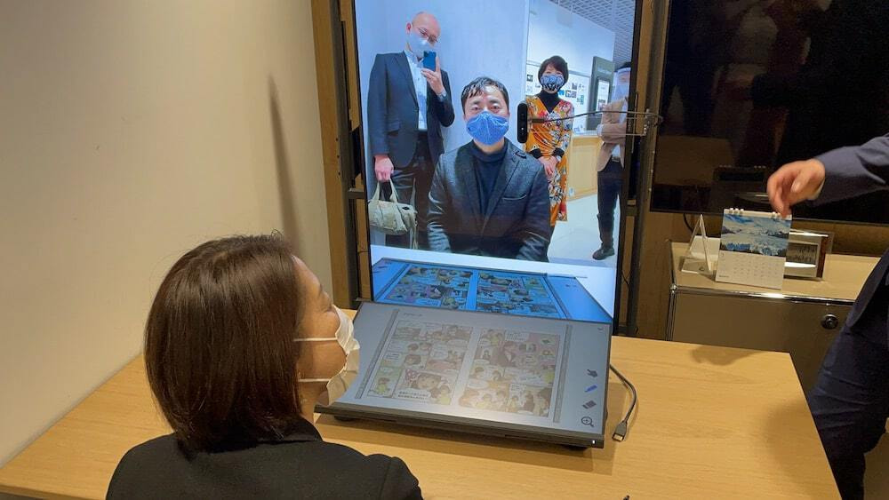zoomなどで会話するとき、カメラ位置の関係でお互い目線をあわせて会話できないですよね?テレプレゼンスではカメラ位置を互いの目線が会う位置に配置しているため、(若干まだずれはありますが)目の前で話をしている感覚になります。将来はどこを見ても画面内の目線を互いに一致させる技術ができそうです。
