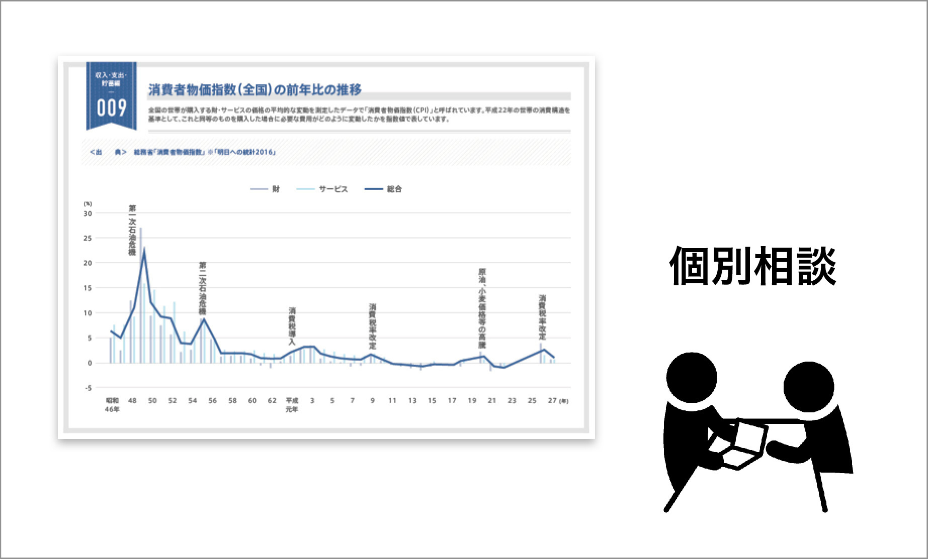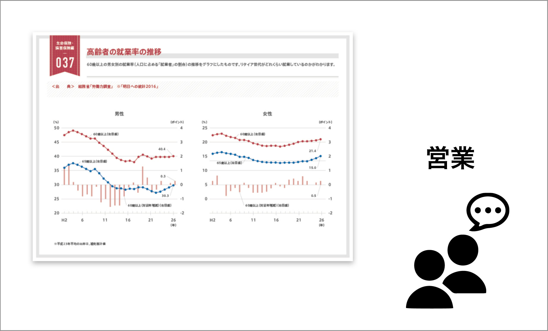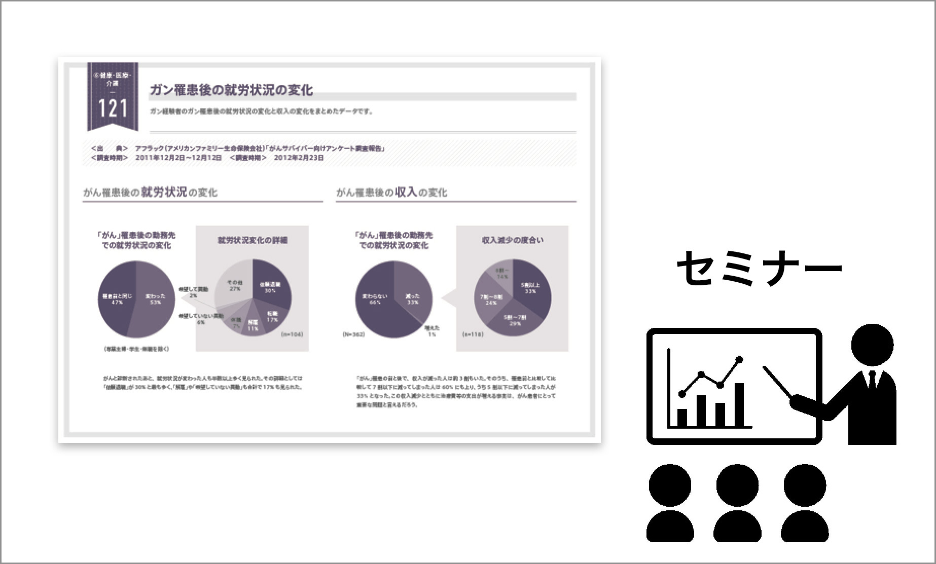 ・セミナー資料、相談業務資料、顧客向け資料、社内向け資料として利用